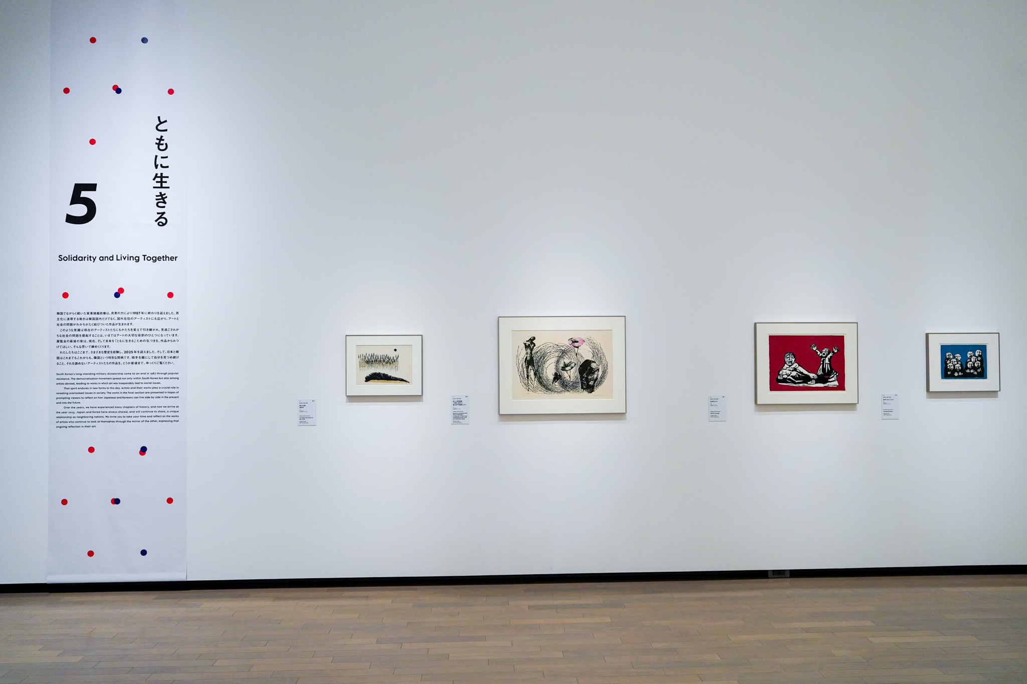 韓国で長らく続いた軍事独裁政権は、民衆の力により1987年に終わりを迎えた。民主化に連帯する動きは国外のアーティストにも広がり、アートと社会の問題がわかちがたく結びついた作品が生まれていく。見過ごされがちな社会の問題を提起することは、いまではアートの大切な役割のひとつだ。展覧会の最後となる本章は、現在、そして未来を「ともに生きる」ための気づきを作品から見つけてほしいという思いで構成されている。