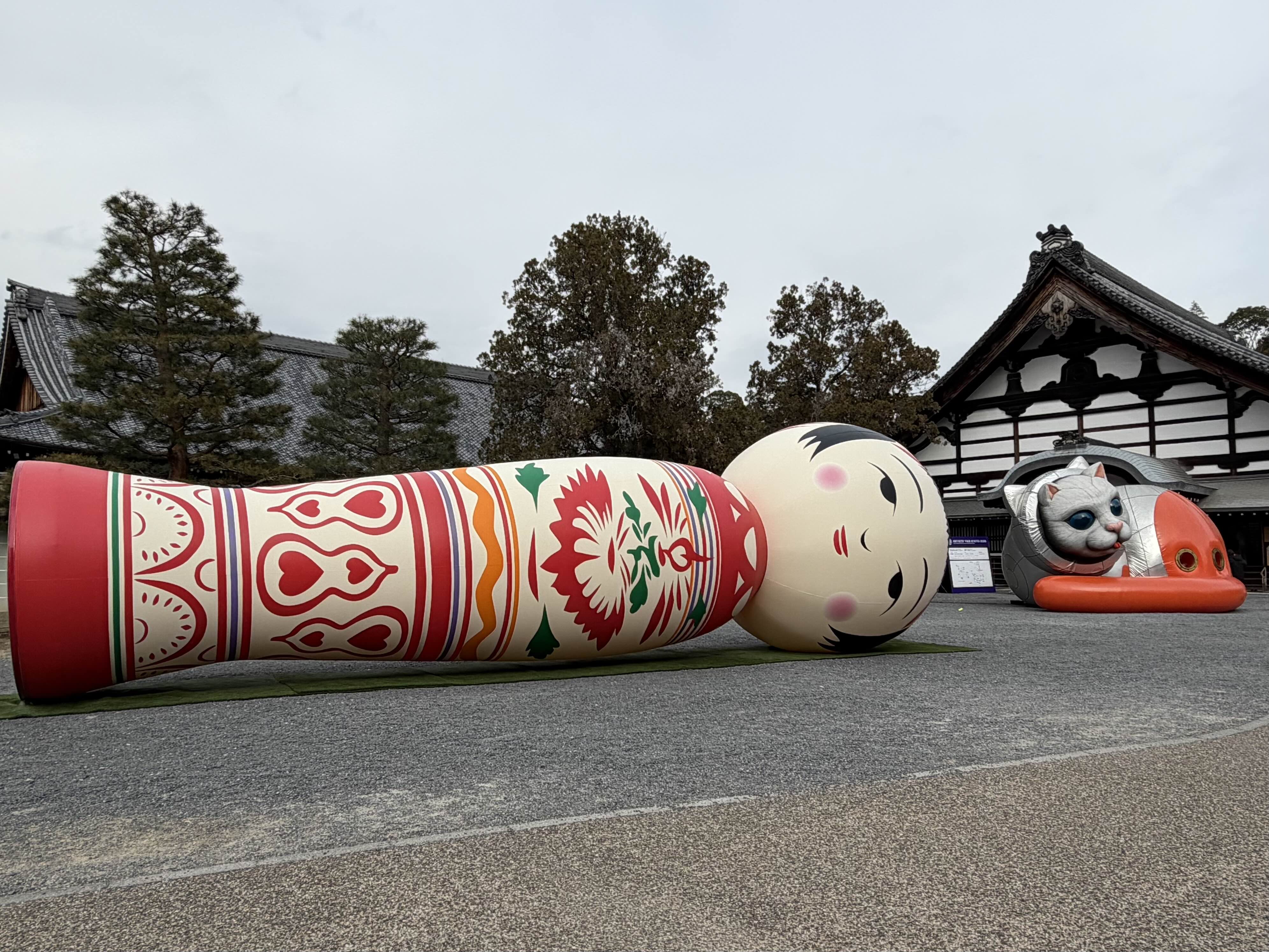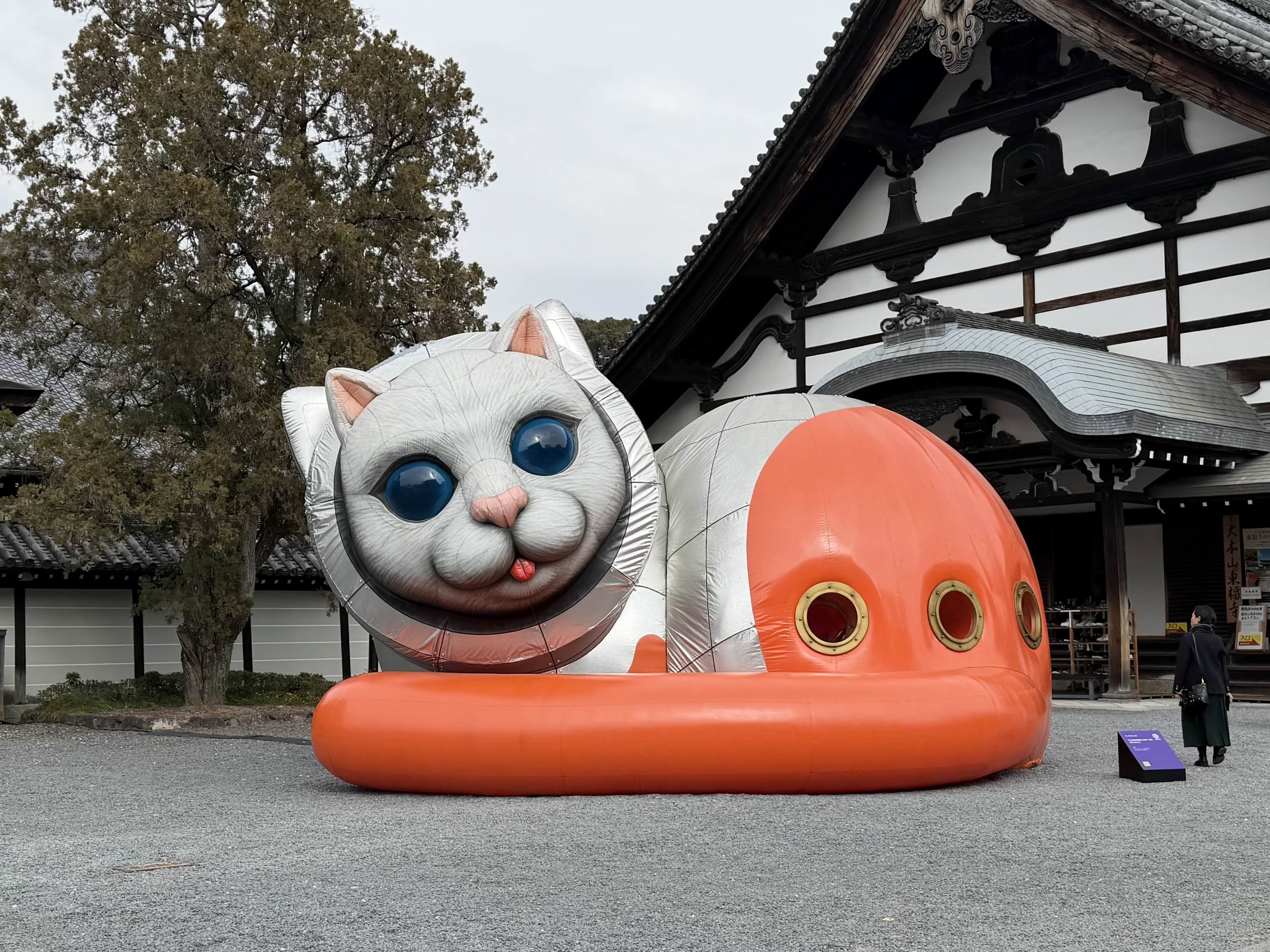 東福寺の入り口には、ヤノベケンジによるSHIP'S CATシリーズの《宇宙猫涅槃像》が東福寺に初登場した。宇宙を旅してきた猫が静かに横たわる姿は、迷いや執着から解き放たれた穏やかな安らぎを表現する。作品の内部に入ることもでき、鑑賞者が静けさのなかに身を置くための「場」としても体験できる。