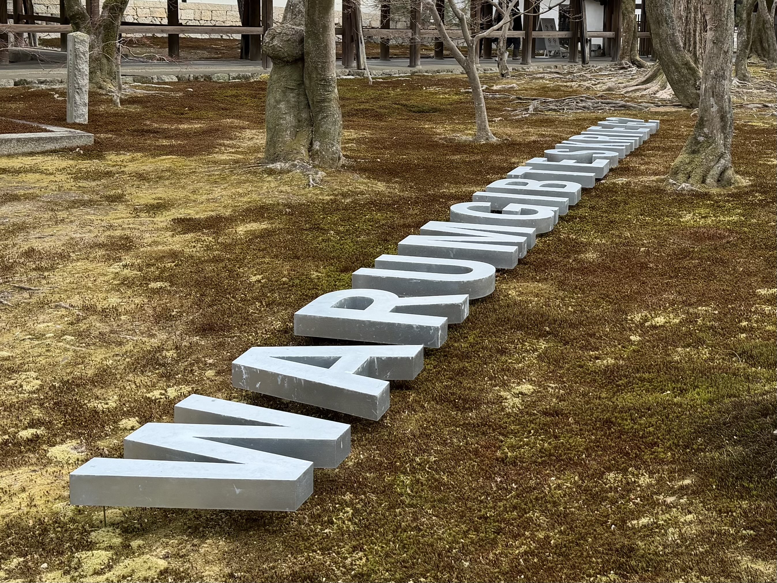 広瀬菜々 & 永谷一馬は、ドイツでの滞在と制作経験を背景に、戦争と平和を巡る問いをテーマとした作品を発表した。作品にはドイツ語で「なぜ戦争があるのか」という言葉が示される。永谷は、「ドイツ語でこの問いを提示することで、歴史や社会の文脈を想起させながら受け止めてもらえたら」と話す。直接的なメッセージを掲げるのではなく、問いの形式を通して思考を促す。鑑賞者が立ち止まり、言葉と向き合う時間そのものが作品体験の一部となっている。