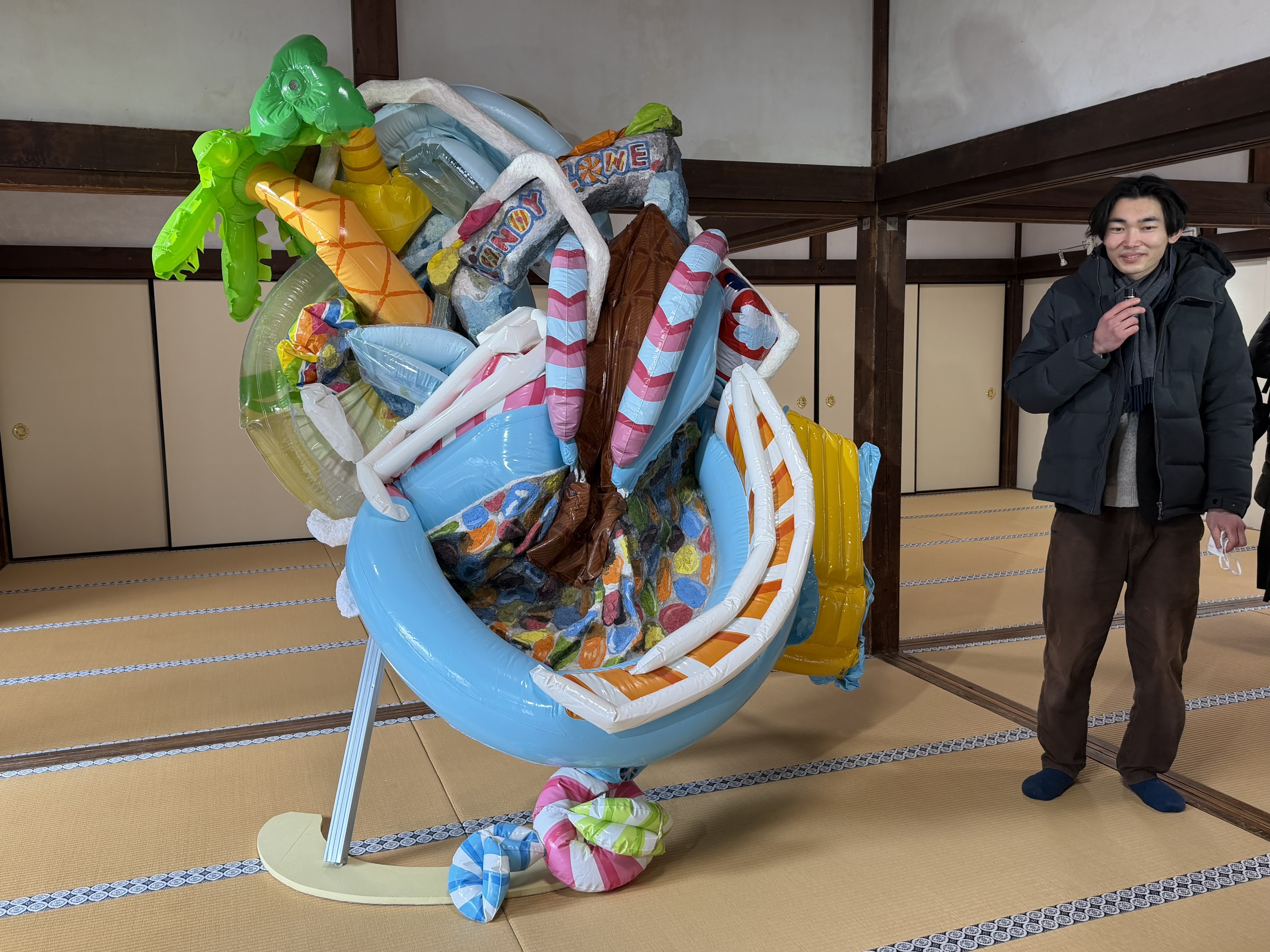 方丈には、アドバイザリーボードを務める作家たちの作品が並ぶ。ヤノベケンジ、名和晃平、椿昇らの作品が禅寺建築の落ち着いた空気のなかに置かれ、庭園の配置や差し込む光、時間の移ろいとともに、作品の見え方に奥行きを与えている。