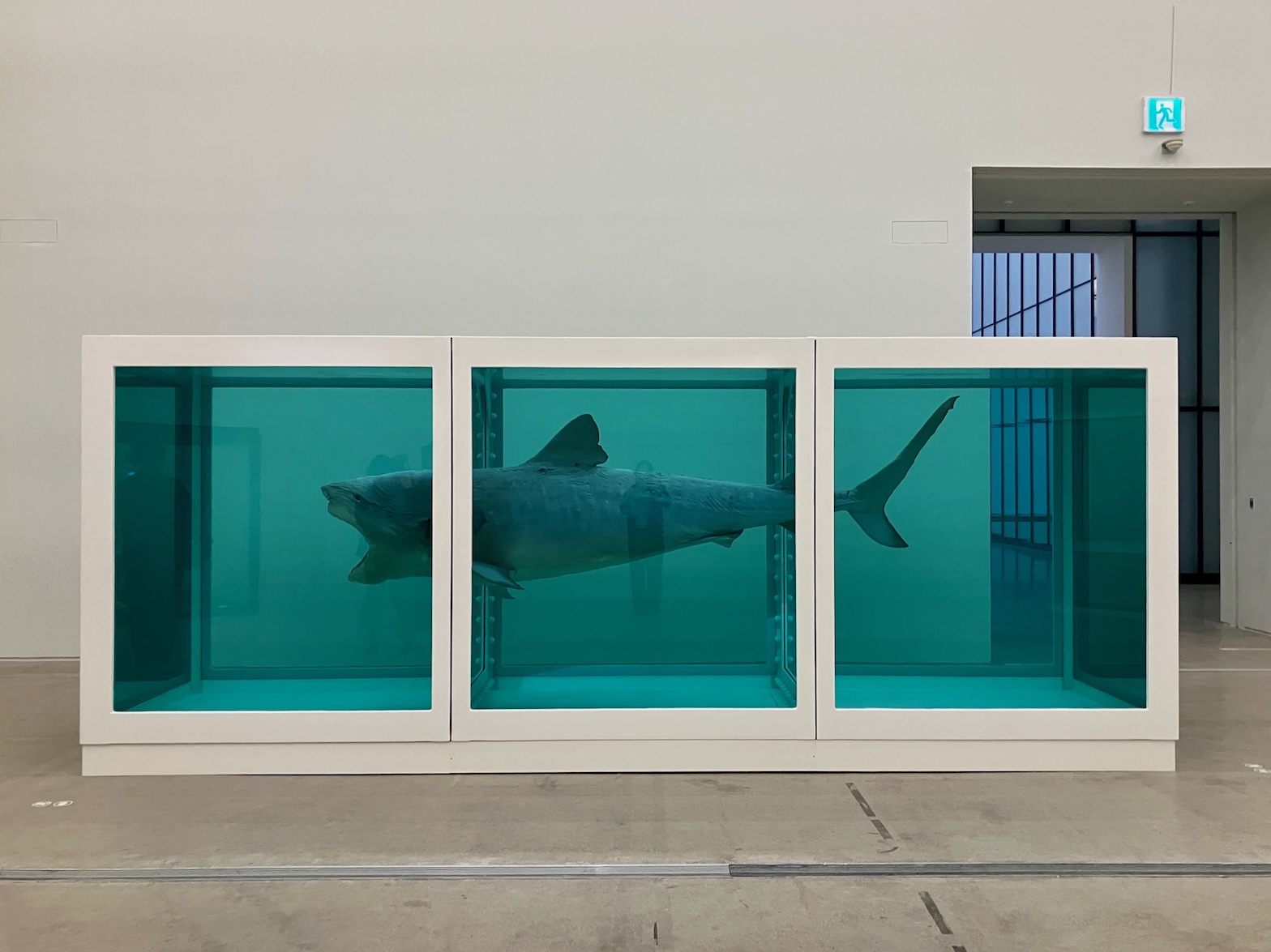 続く第2章「We Live in Time」では、ハーストのもっとも有名な作品である《The Physical Impossibility of Death in the Mind of Someone Living(生者の心における死の物理的な不可能性)》が登場。いまにも襲い掛かろうとする瞬間に静止したようなサメの姿には、死への恐怖や、腐敗を遅らせることによる永続的な生への欲望といった、人間が「死」に抱く複雑な感情が表現され、「死の物理的な不可能性」を問いかける。本作は1991年の初展示から数回しか展示されておらず、今回は2012年のテートモダン以来。アジア初展示でもある本展では、借用交渉だけで約6ヶ月を擁し、輸送や設置にも容易ではないプロセスがあったという。