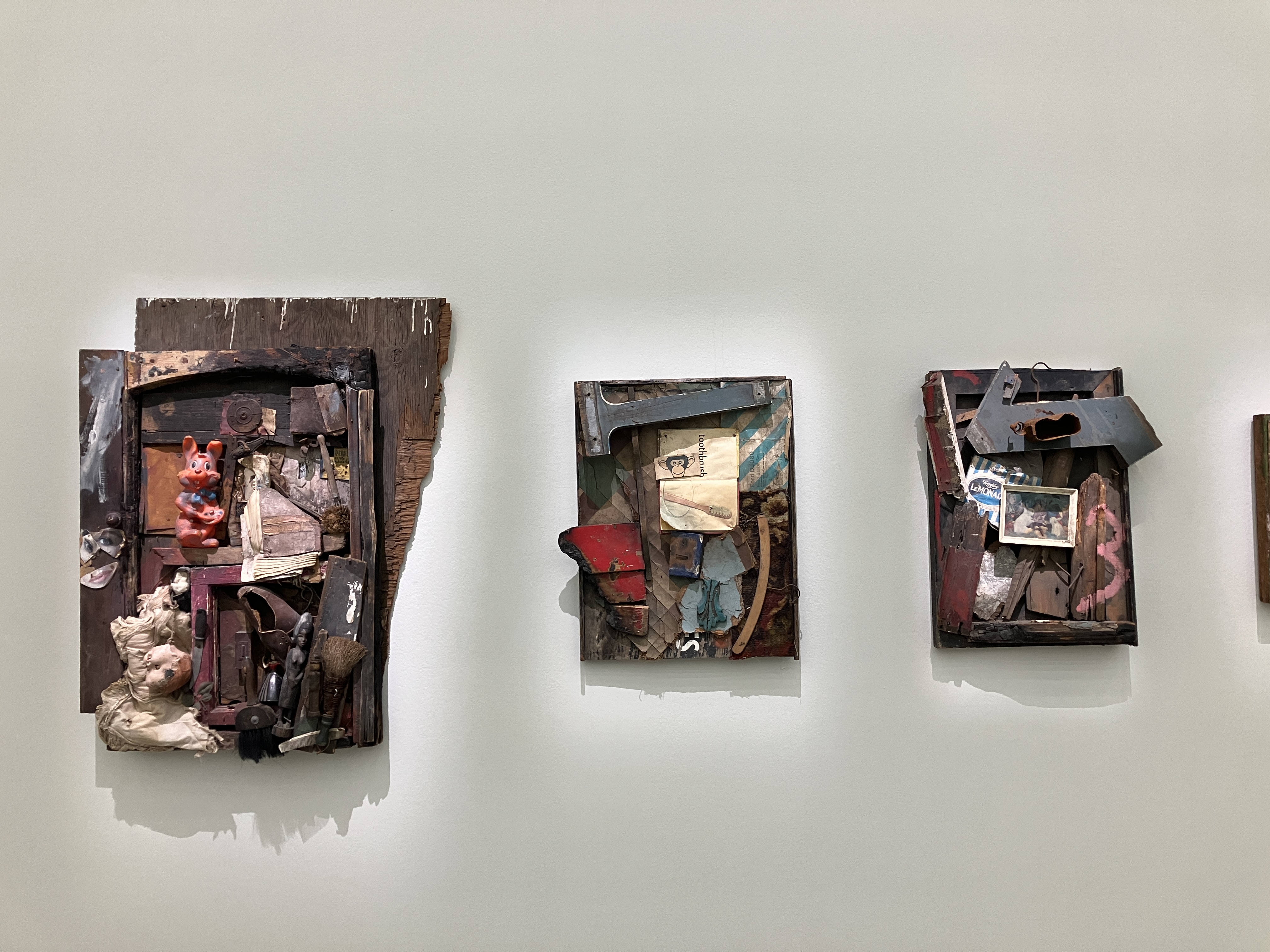 さらに「Freeze」展に出品された段ボールの作品《Boxes》をはじめとする日用品を用いたミニマリズムへの関心をうかがわせる作品群や、ゴールドスミス入学前の10代後半から20代前半にかけて独自の芸術言語を模索するなかで制作された、廃屋の素材を組み合わせたコラージュ作品群も見どころだ。これまであまり紹介されてこなかった初期の実験的な作品が多数並ぶのは、本展の特徴のひとつだ。