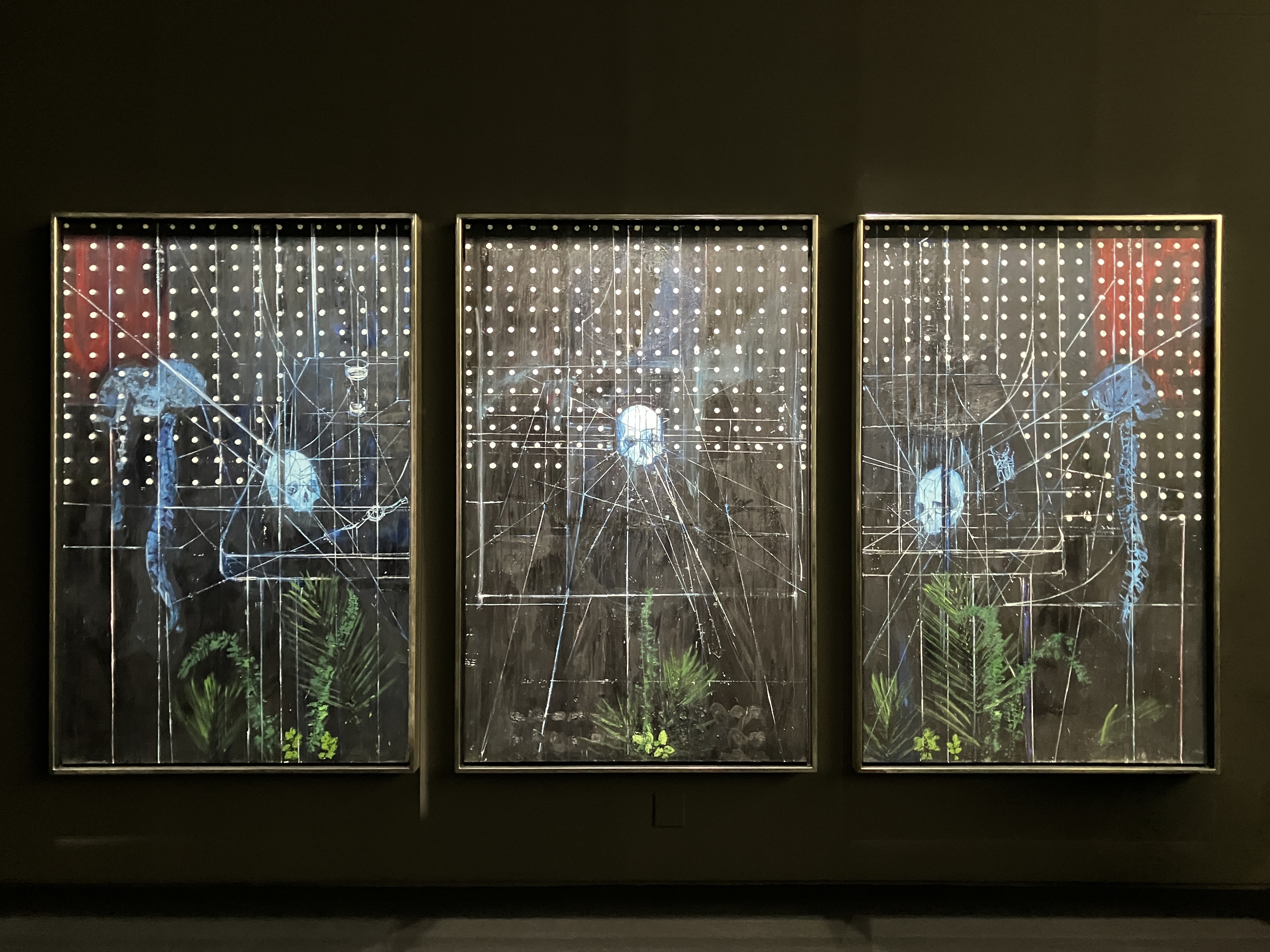 無数のカプセルや錠剤が敷き詰められた《Prototype for Infinity》、医療器具が種類ごとにガラスキャビネットに収められた《Invasion》、ホルマリン漬けの魚と魚の骨が対称的に並ぶ《Victim》などからは、「生と死」の探究とともに、収集し分類することへの強い関心も見えてくる。生命力に溢れながら儚く散る桜を描いた「Cherry Blossom(桜)」シリーズの油彩画も、生と死・美と欲望のテーマを喚起する作品として本章で紹介されている。