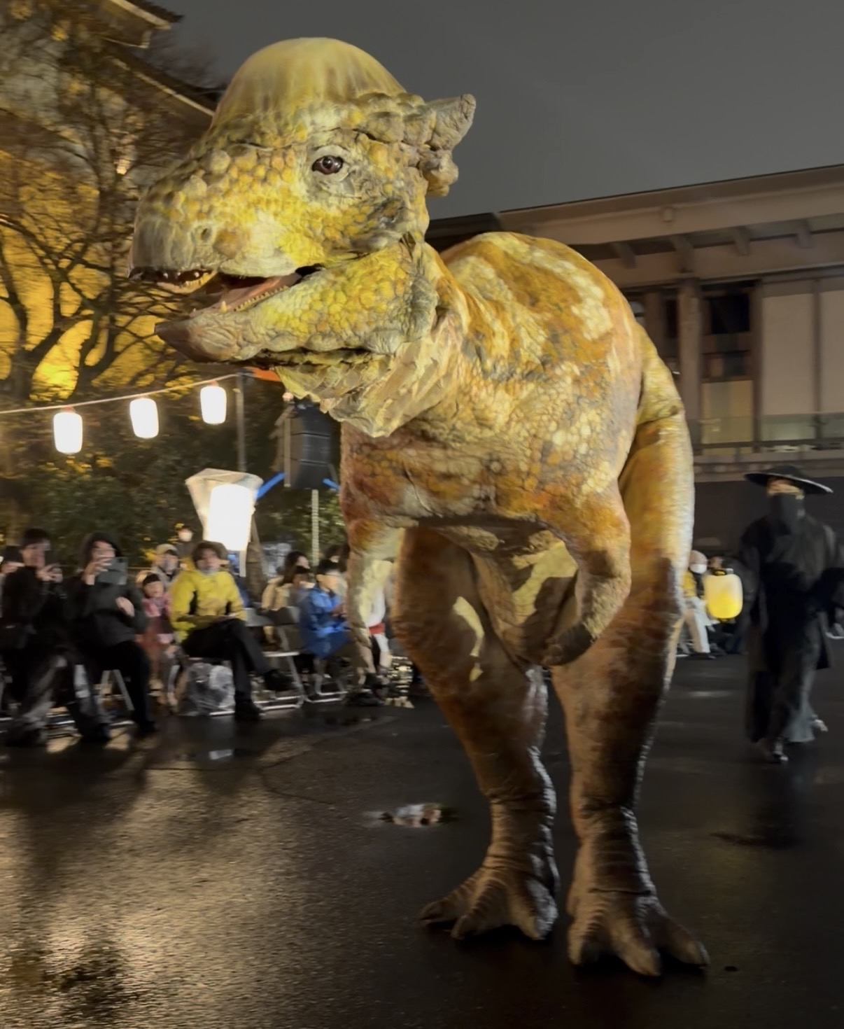 百鬼夜行絵巻に着想を得て、妖怪や鬼の代わりに恐竜たちが夜の中庭を練り歩く。東京国立博物館という場ならではの、非日常的な夜のパレードに迫る。