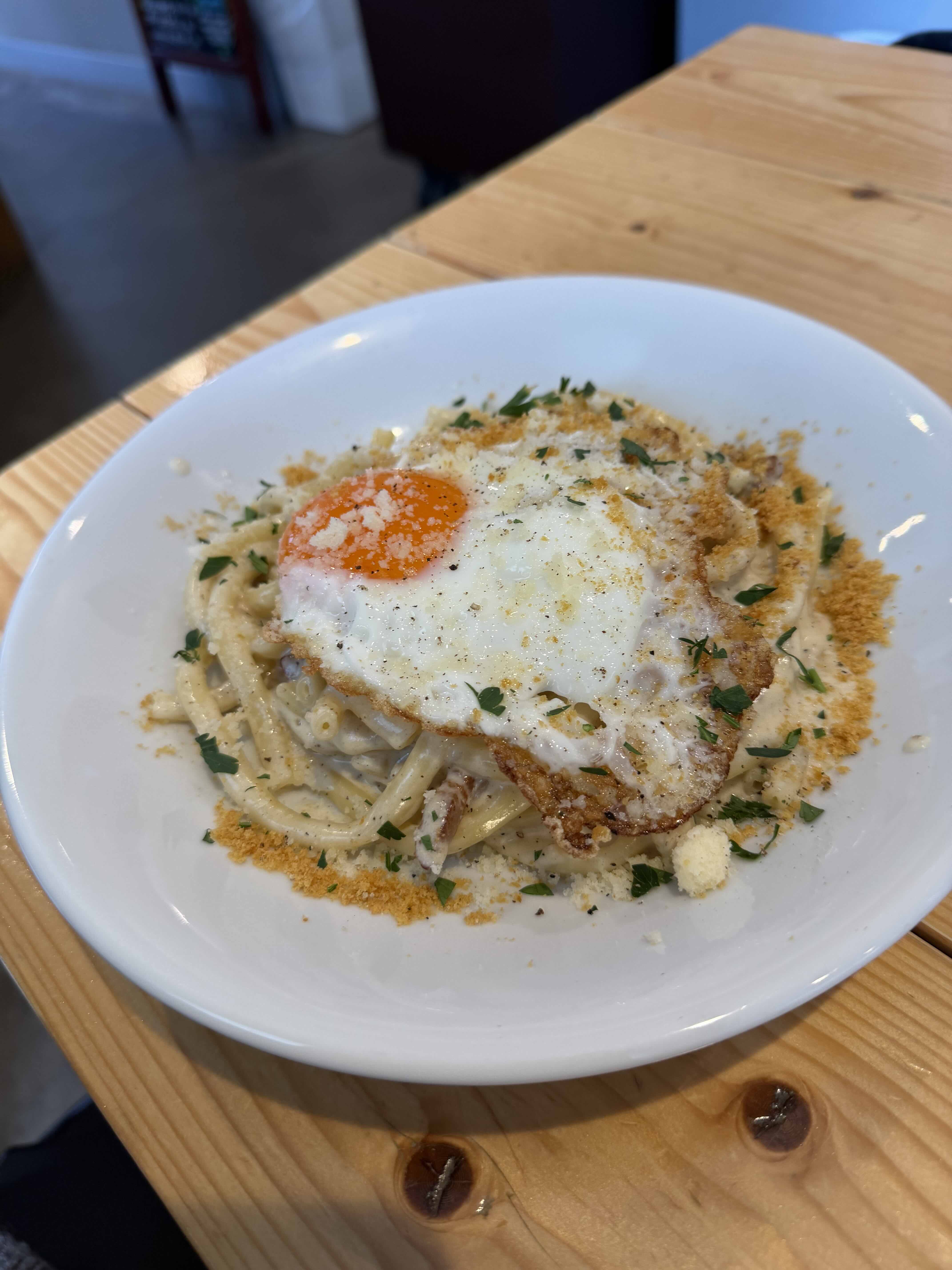 先月訪れたアーツ前橋。その帰りに立ち寄ったのが、ポーランドのパスタ店「GRASSA」です。初めて入る店ではオリジナルメニューを頼むことが多いのですが、おすすめはカルボナーラとのことで、迷わず注文しました。