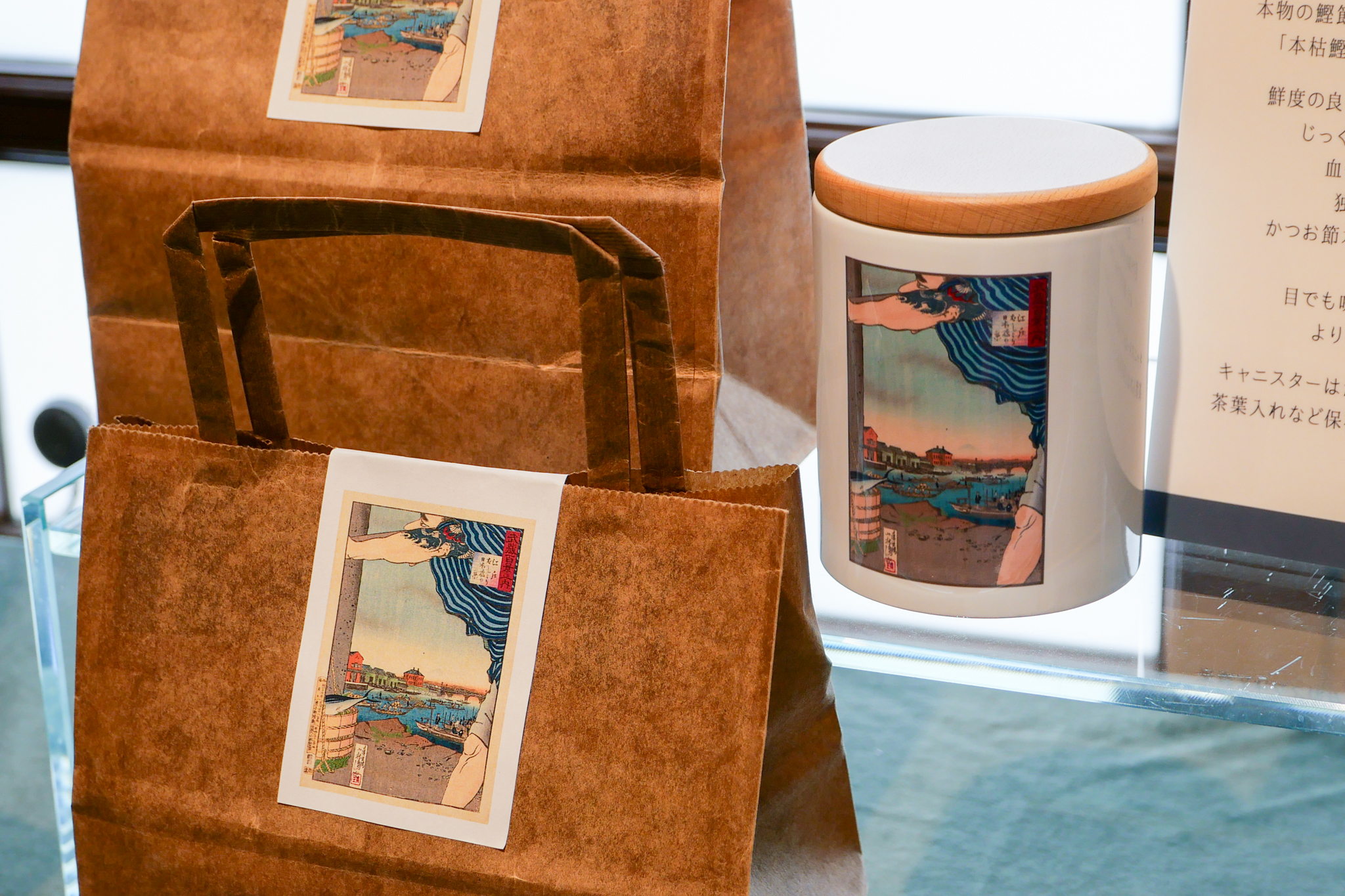 小林清親の作品がデザインされたキャニスターと「にんべん」の鰹節がセットに。調味料やお菓子、茶葉などの保存容器としてマルチに使える。価格は1800円(税込)。