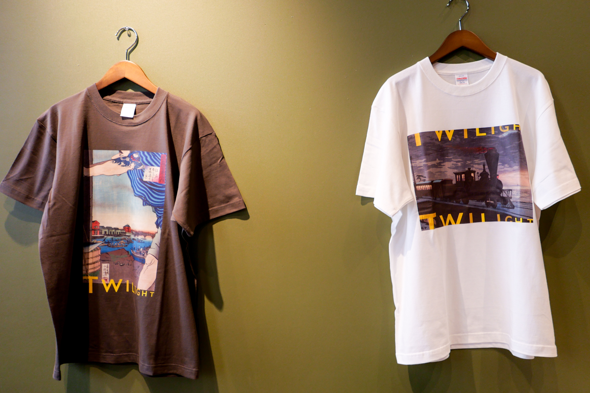 展覧会定番グッズのTシャツは2種類、M・Lサイズで展開。小林清親の作品を堂々と着たいファンにおすすめ。価格は3300円(税込)。