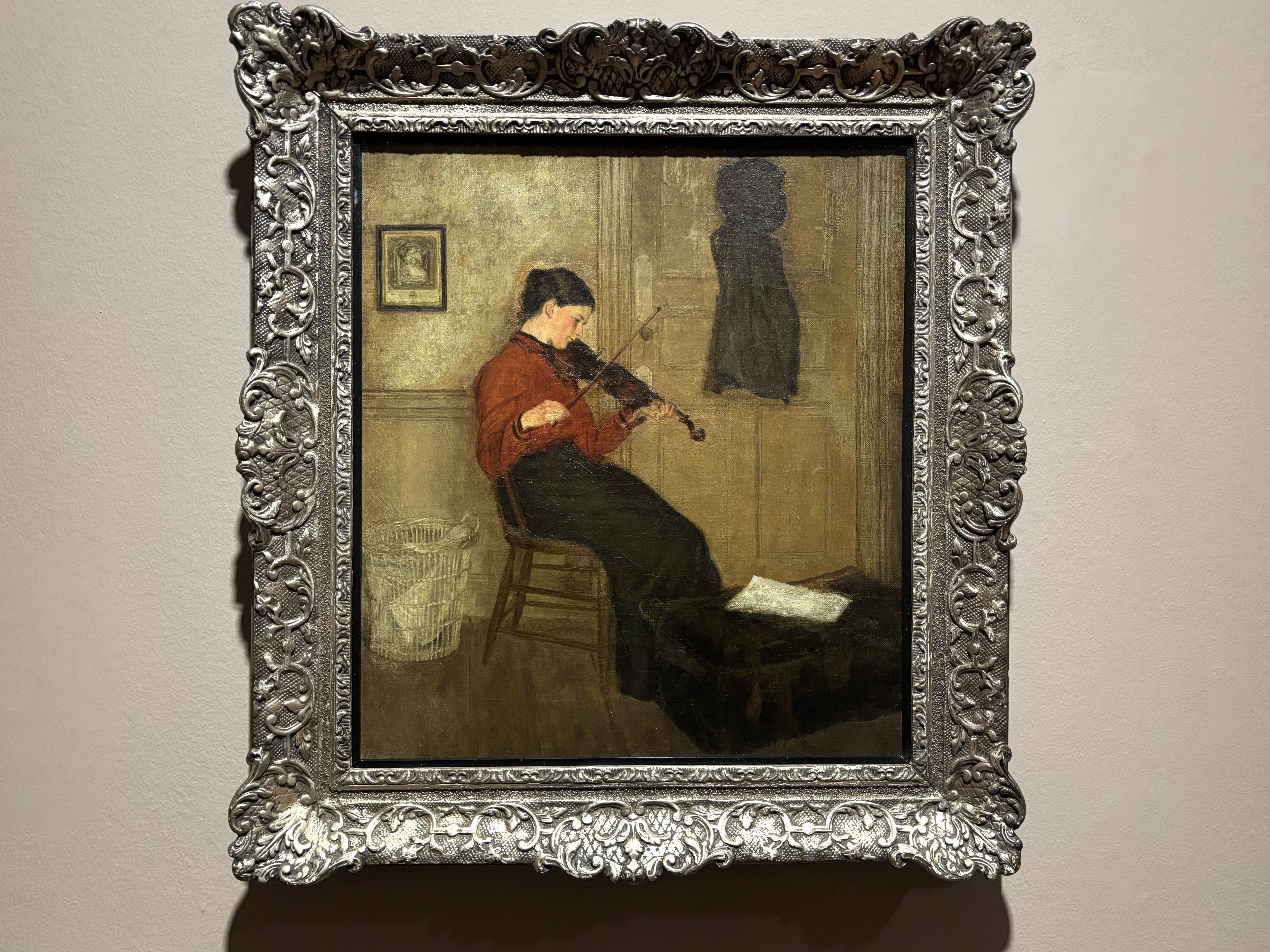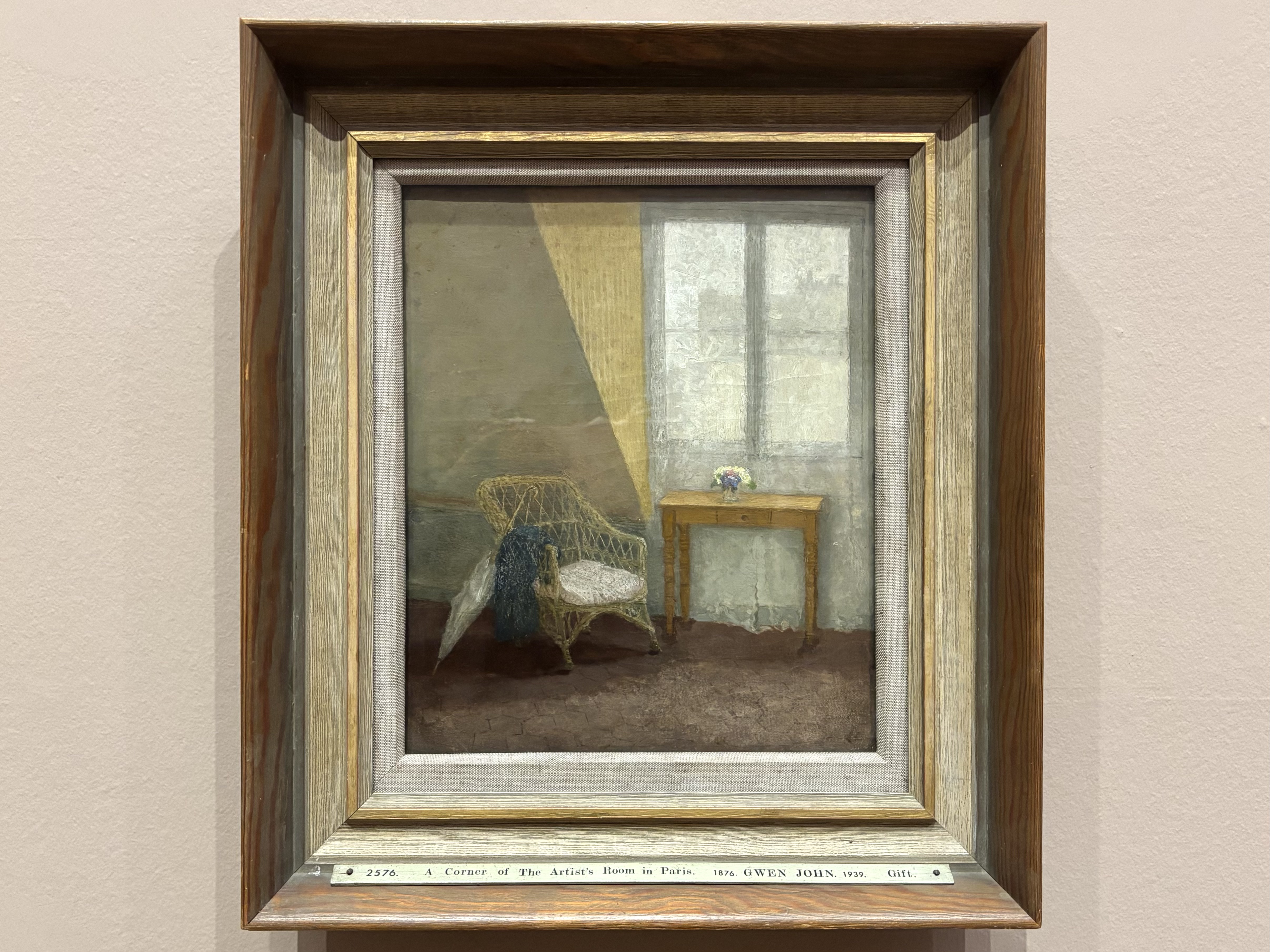 ジョンの小さな屋根裏部屋のアパートを描いた本作は、ロンドン時代の絵画とは雰囲気が大きく異なる。トーン重視の抑制された色彩からはホイッスラーからの影響も感じられる。