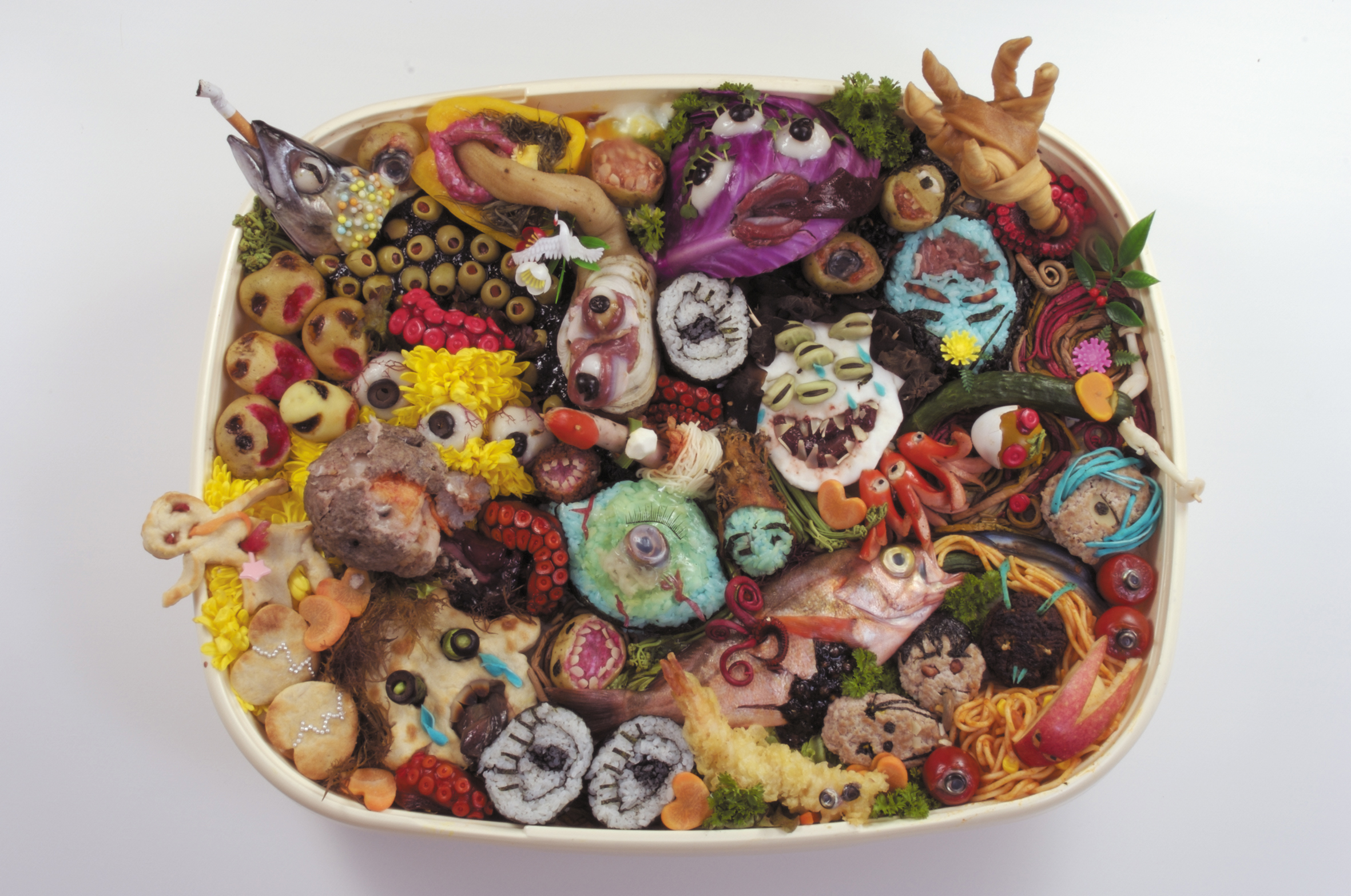 《愛憎弁当》(2007)も、まさにそのお弁当のプレッシャーがテーマでした。アメリカの料理番組風に、私が演じた架空のお料理の先生が子供の教育をテーマにしたお弁当レシピを作るという作品ですが、私自身一度幼稚園のお弁当を作るのを忘れてしまい、咄嗟にコンビニのサンドイッチを持たせたら、先生に「買ったサンドイッチなんてかわいそうだから、いまから家に戻ってお弁当を作ってからもう一度届けてください」と突き返されたことがあって……。日本のお母さんの手作り弁当文化は命がけの恐ろしい世界だなと思いました。