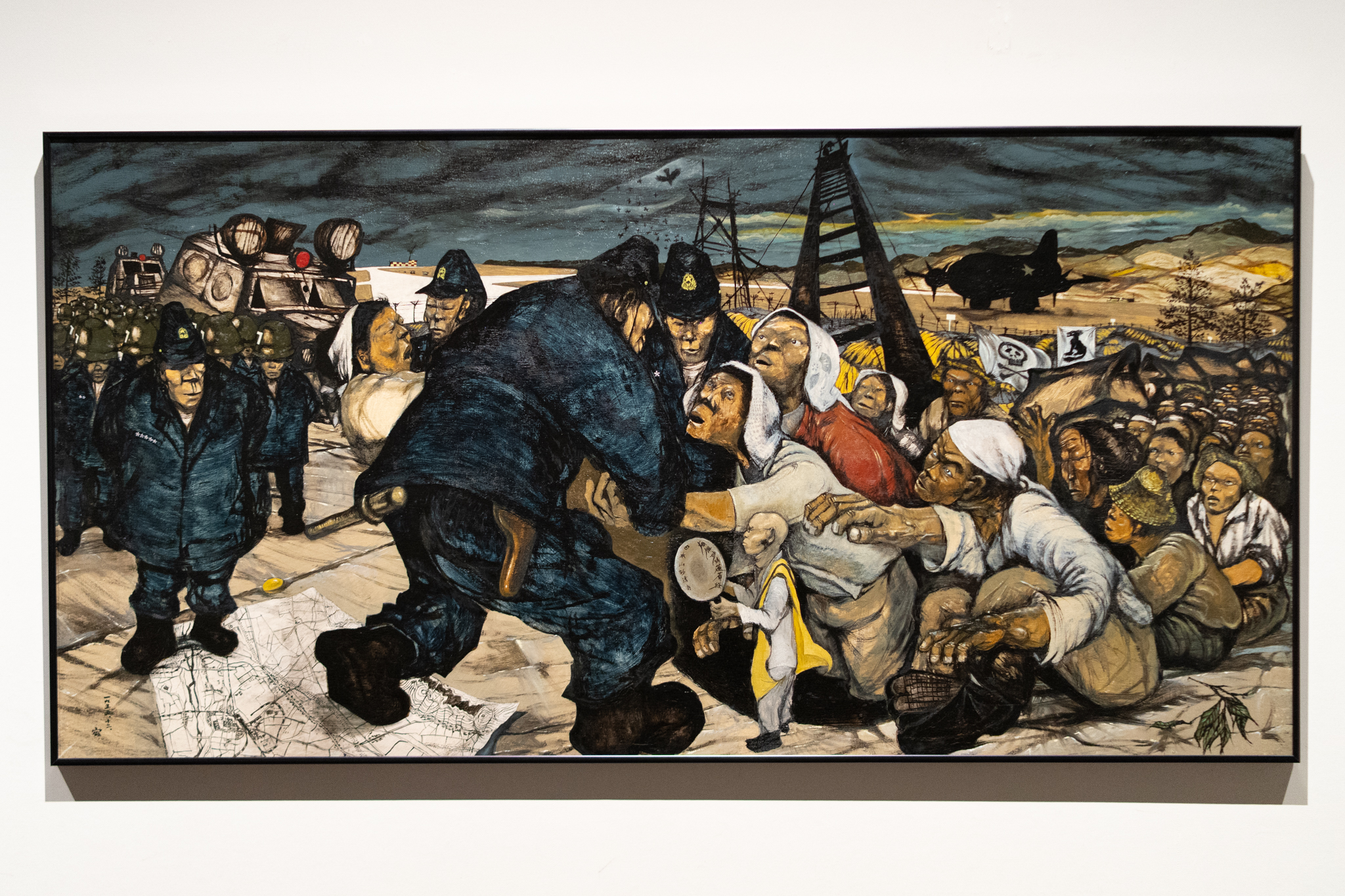 基地闘争などを対象にした「ルポルタージュ絵画」で日本の戦後美術に名を刻んだ画家の中村宏が93歳で永眠したのは今年1月8日。その大規模回顧展「中村宏 アナクロニズム(時代錯誤)のその先へ」が、静岡県立美術館で3月15日まで開催されている。企画担当は、同館上席学芸員の川谷承子と植松篤。