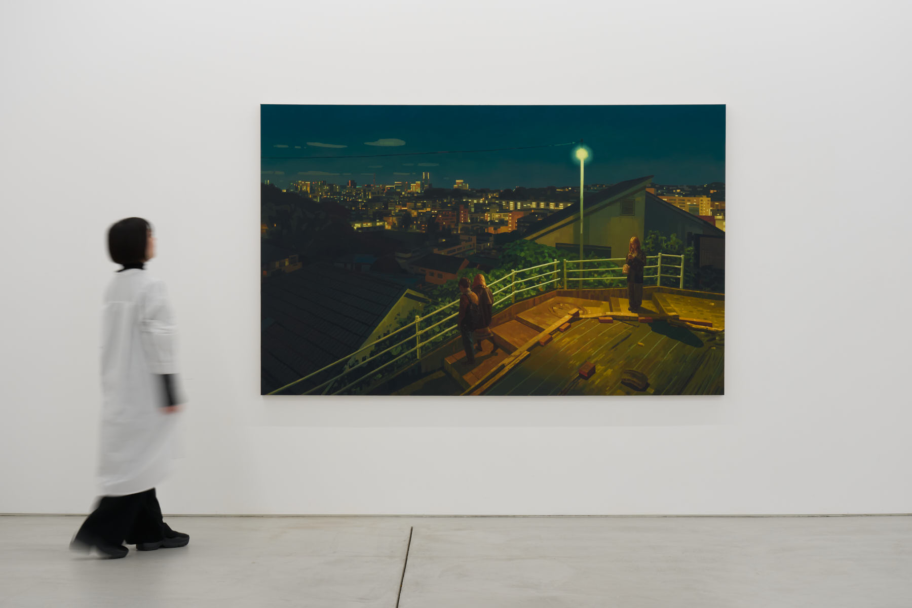 暮れなずむ街に滲む灯り、道に佇む人、闇に光る自動販売機。そんな光と影が交錯する現代の都市風景を古典的技法で描き、特別な存在に昇華させる森本啓太。その個展「what we told ourselves」が、東京のKOTARO NUKAGA(天王洲)で1月17日から3月7日まで開催されている。