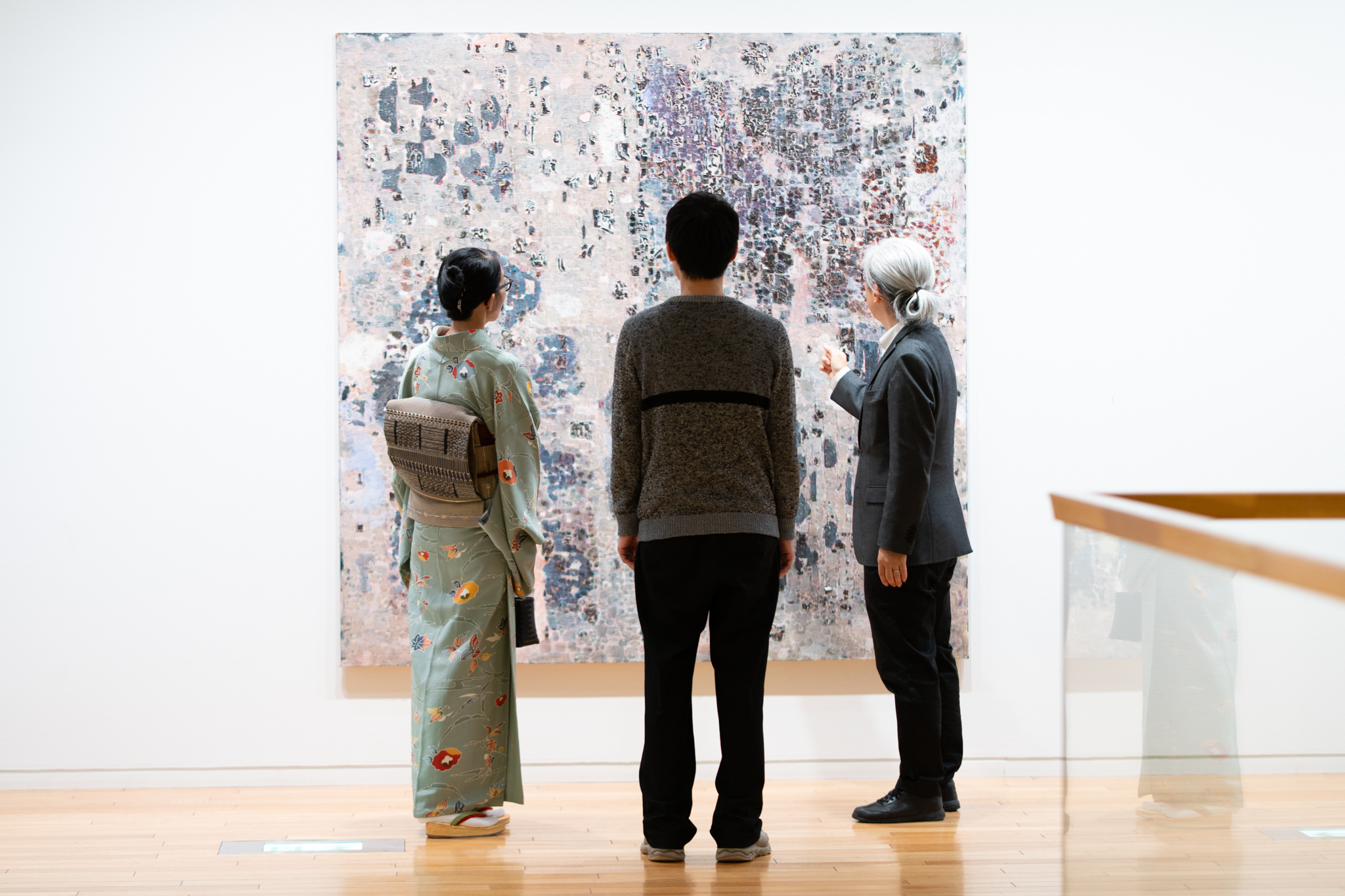 「彼の場合は、抽象絵画でありながら、ある意味非常にコンセプチュアルな部分がある。人間の認識や、日々の生活、言語との関わりなど、人間の思考や認識と『描く』ということとの関係についてつねに考え続けている作家です。そして、その思考が最終的に点描になる。彼の作品は、シリアスな抽象的な絵画のようでいて、どこか飄々としたユーモアもある。それがおもしろい」(福士)