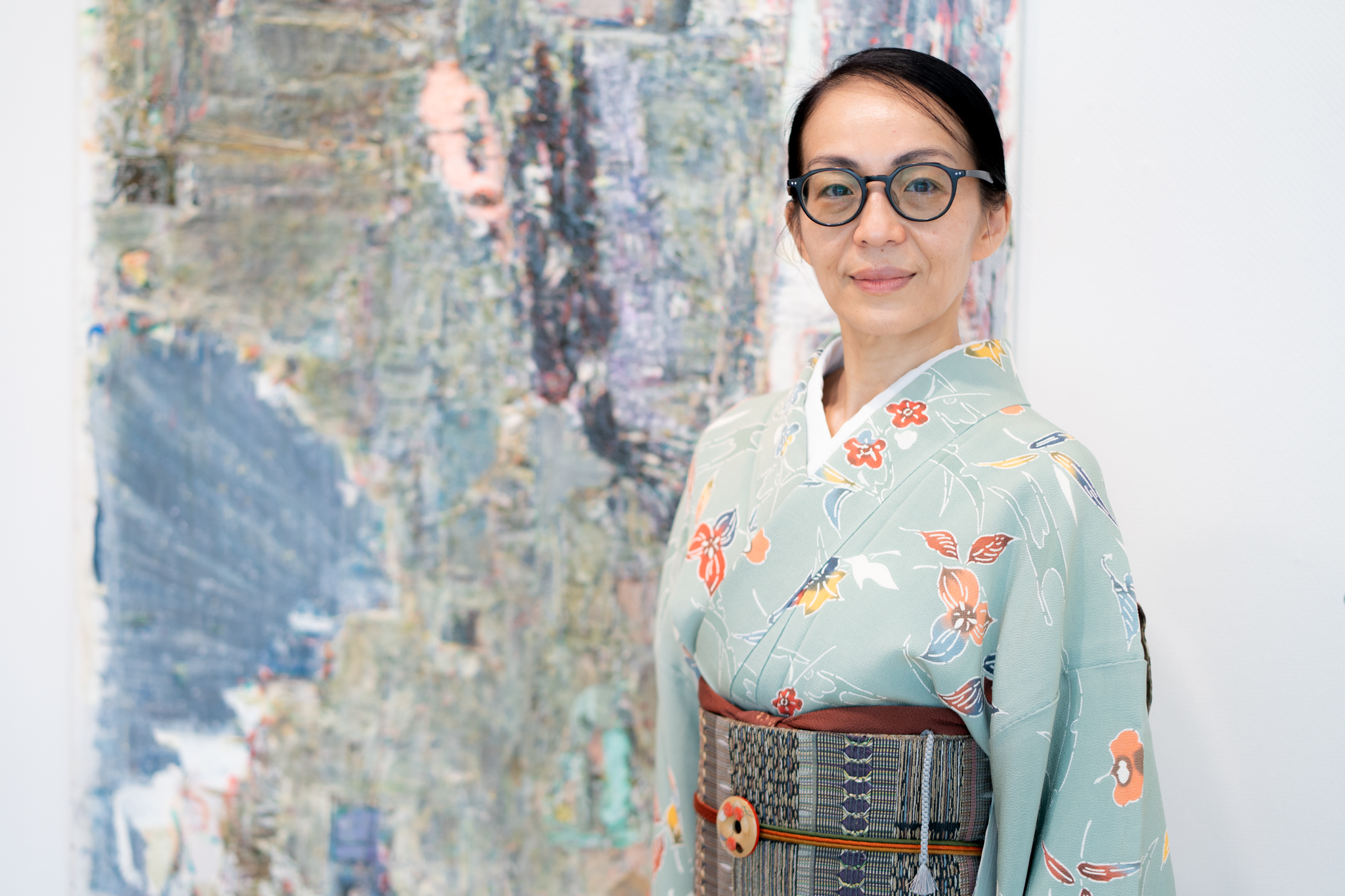 コロナ禍で毎日のように世界のニュースが流れるなか、新しいテーマに挑み、2メートルの大きなキャンバスに向かい続けました。気づけば一日に何枚も描き上げ、最終的には100点を超える作品が生まれ、美術館の廊下を埋め尽くすほどになったのです。
