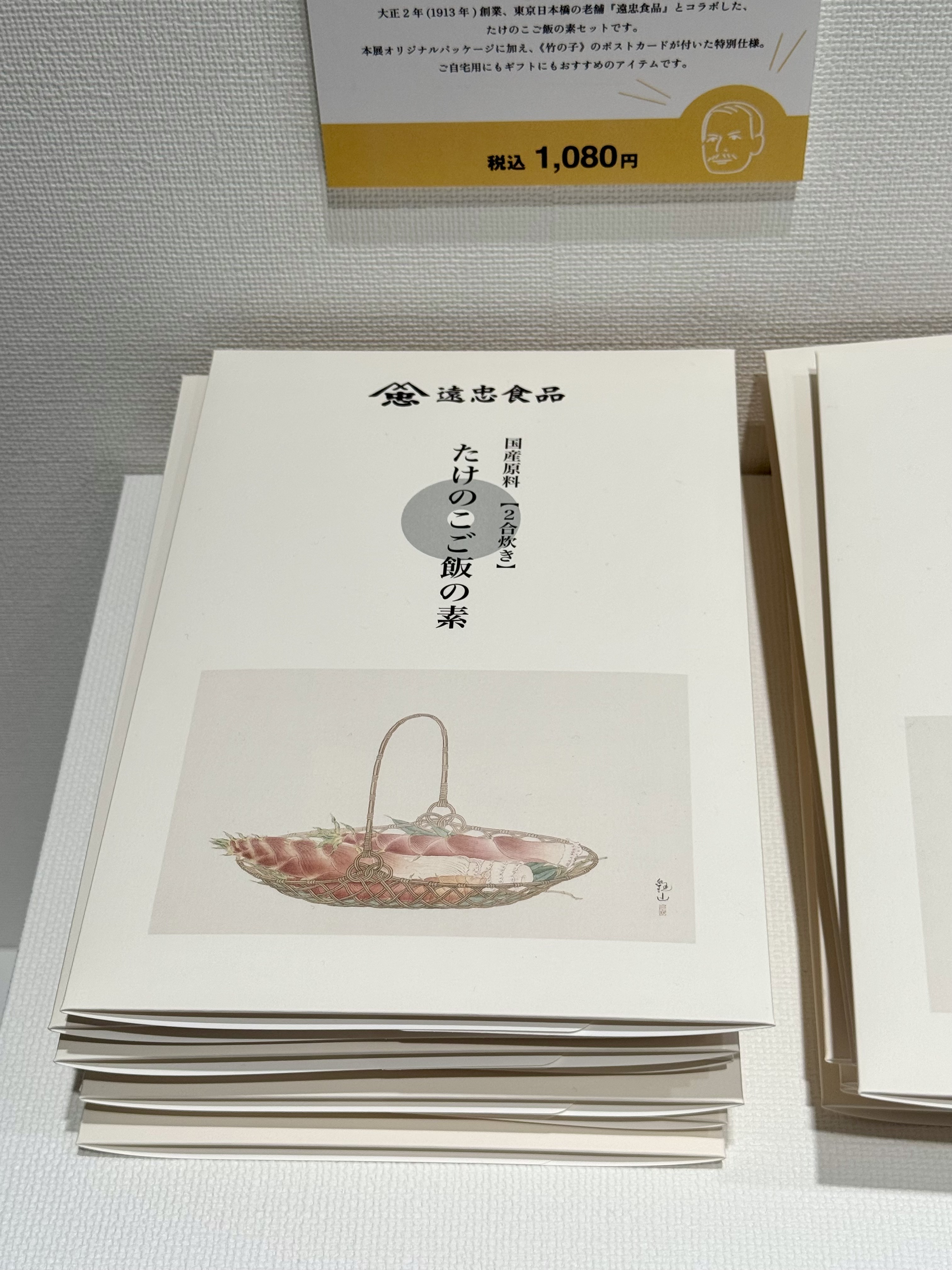 出品作《竹の子》に着想を得て生まれた、東京・日本橋の老舗「遠忠食品」とのコラボレーション商品。100年以上の歴史を持つ老舗ならではの味わいを、自宅で手軽に楽しめるのがうれしい。ポストカード付きで、展覧会の記念やちょっとしたギフトにも向いている。1080円(税込)。