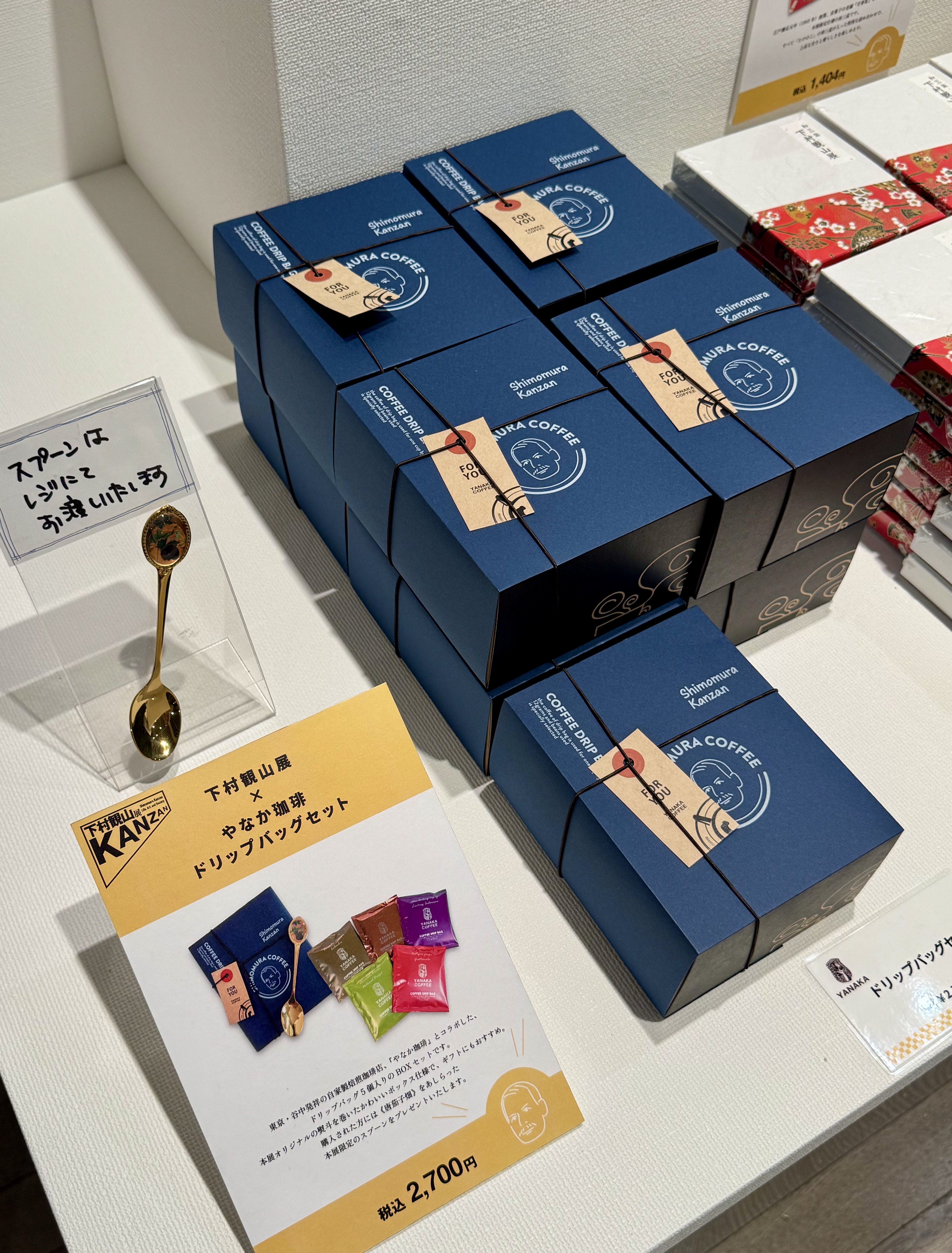 東京・谷中発の自家焙煎珈琲店「やなか珈琲」とのコラボによるドリップバッグセット。深いコクと豊かな香りを楽しめる味わいで、自宅用にもギフトにも向いている。さらに、《唐茄子畑》をあしらった限定スプーンが付くのもうれしいところ。展覧会の気分を自宅で楽しむことができる。2700円(税込)。