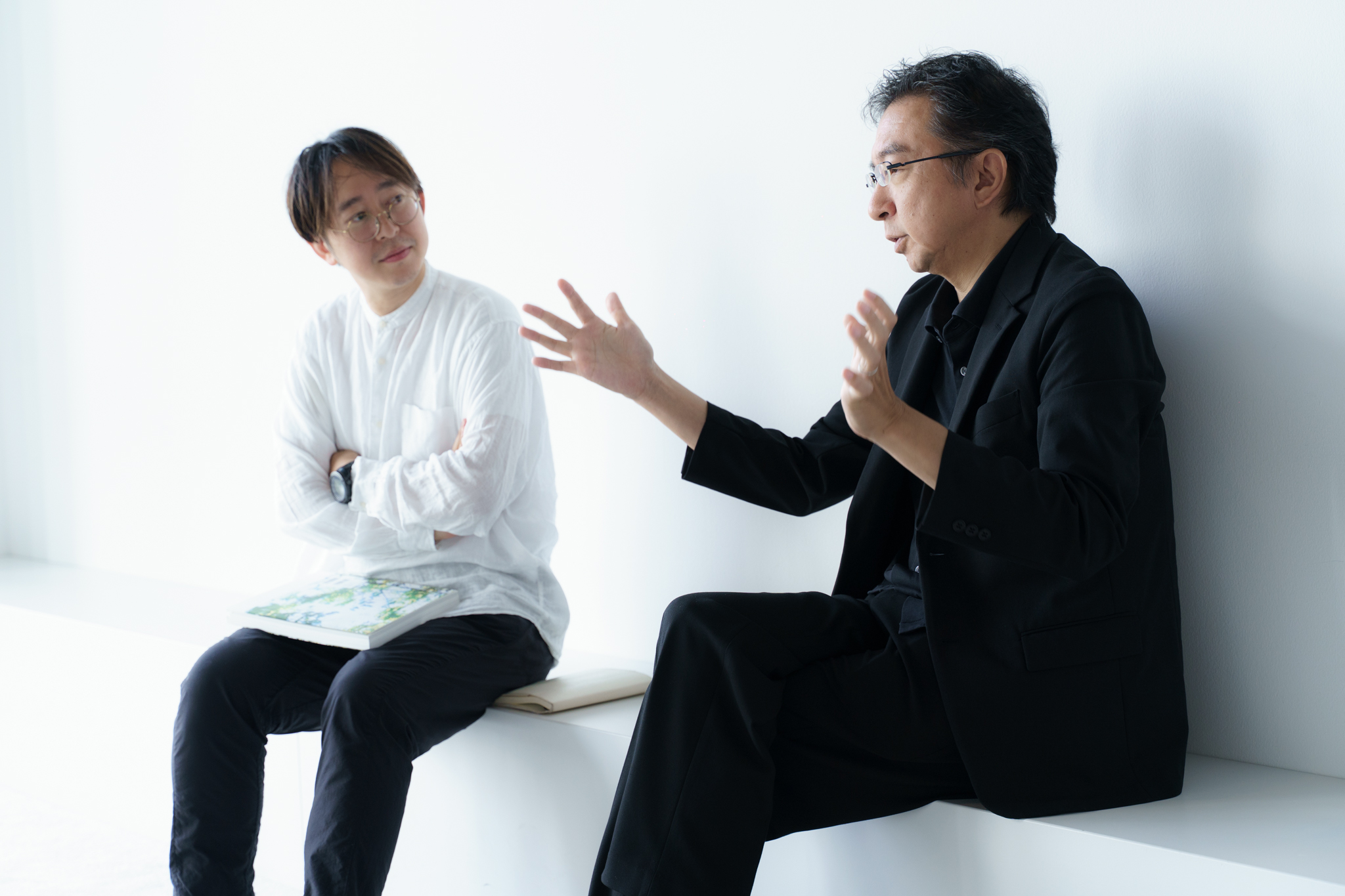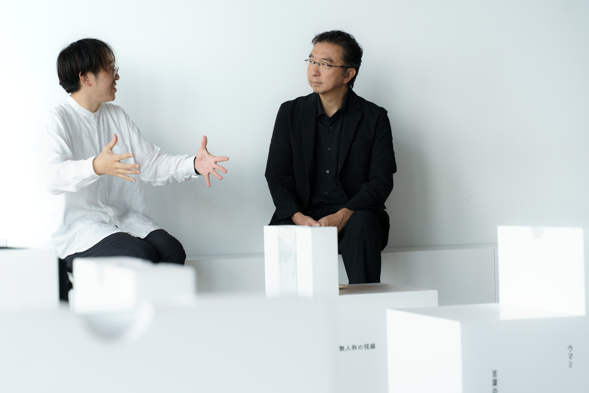 「藤本壮介の建築:原初・未来・森」会場にて、左から藤本壮介、本橋仁 撮影:灰咲光那(編集部)