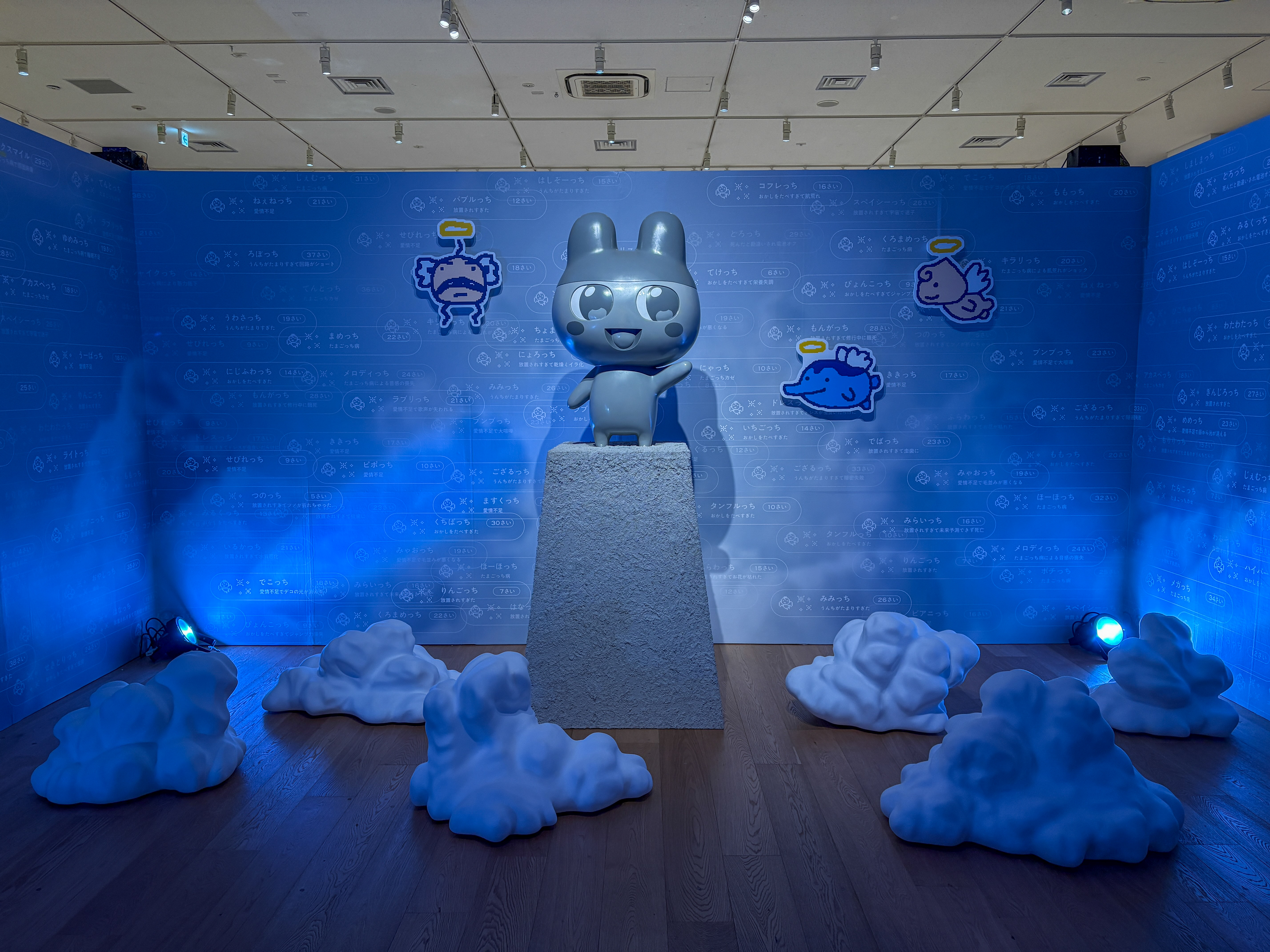 さらに会場の奥へと足を進めると、そこには天に召されたまめっちの姿が……。世話を怠るとすぐに「死」が訪れる、そんなたまごっちならではのシビアな設定が遊び心たっぷりに再現されている。