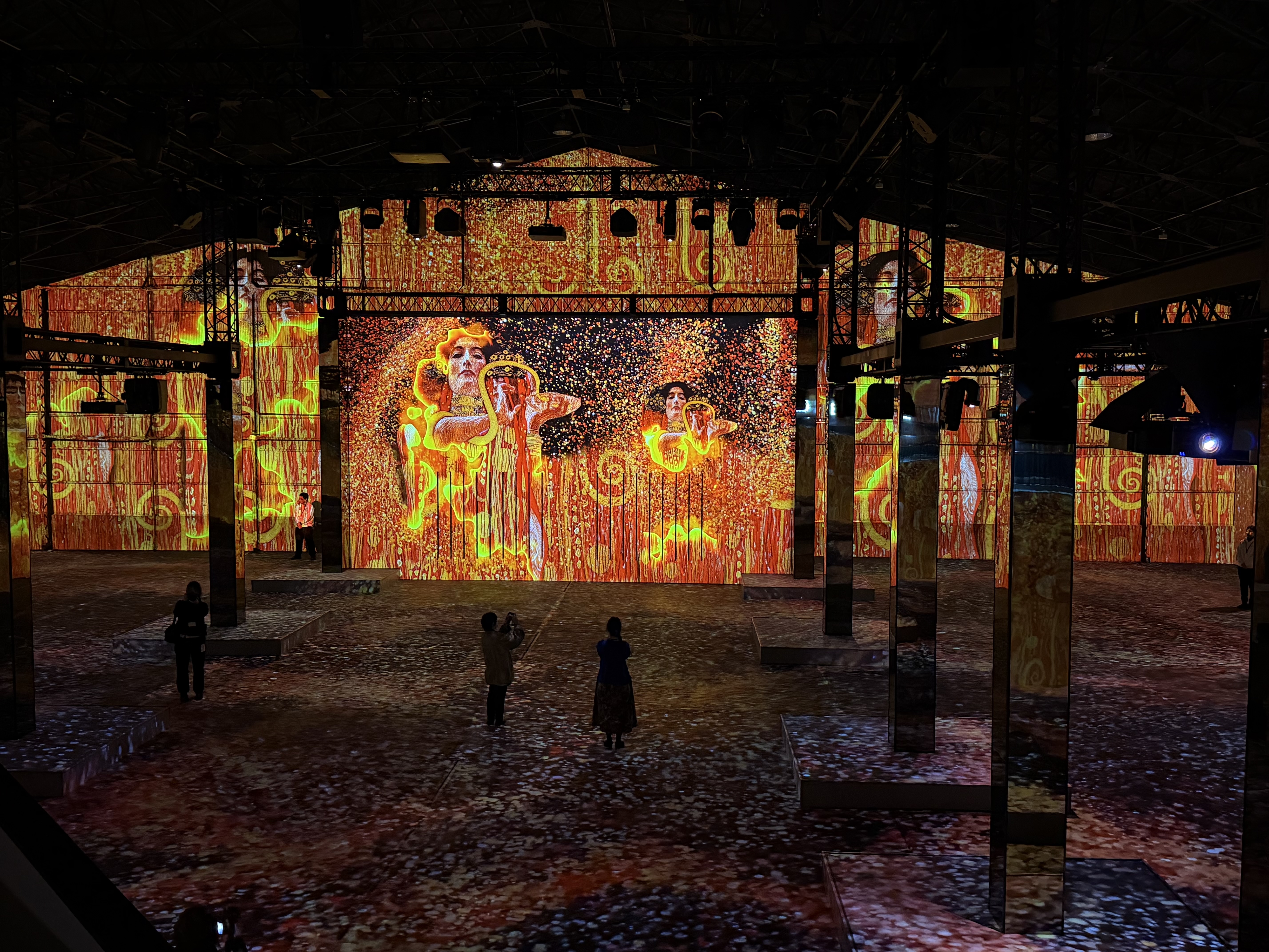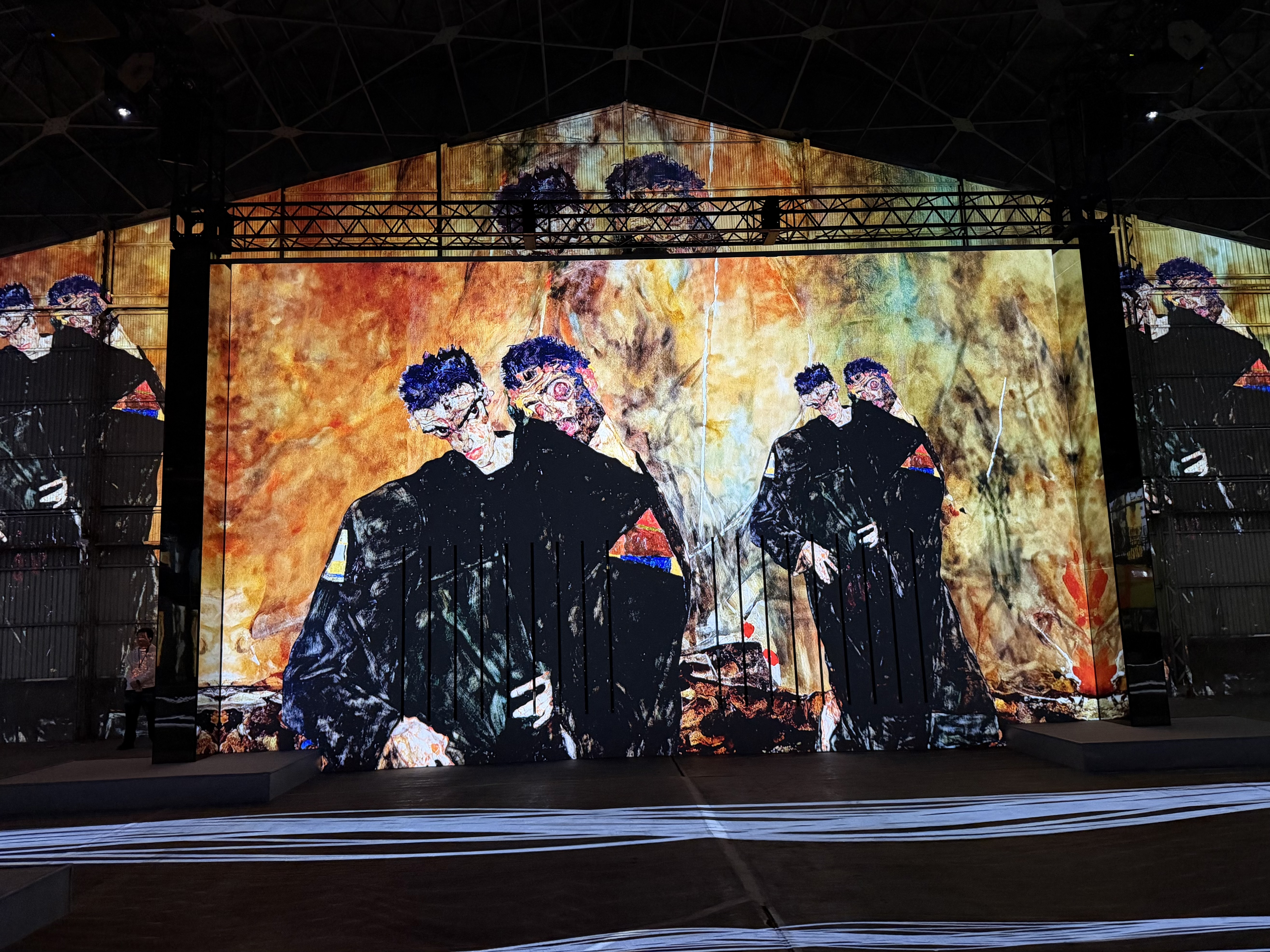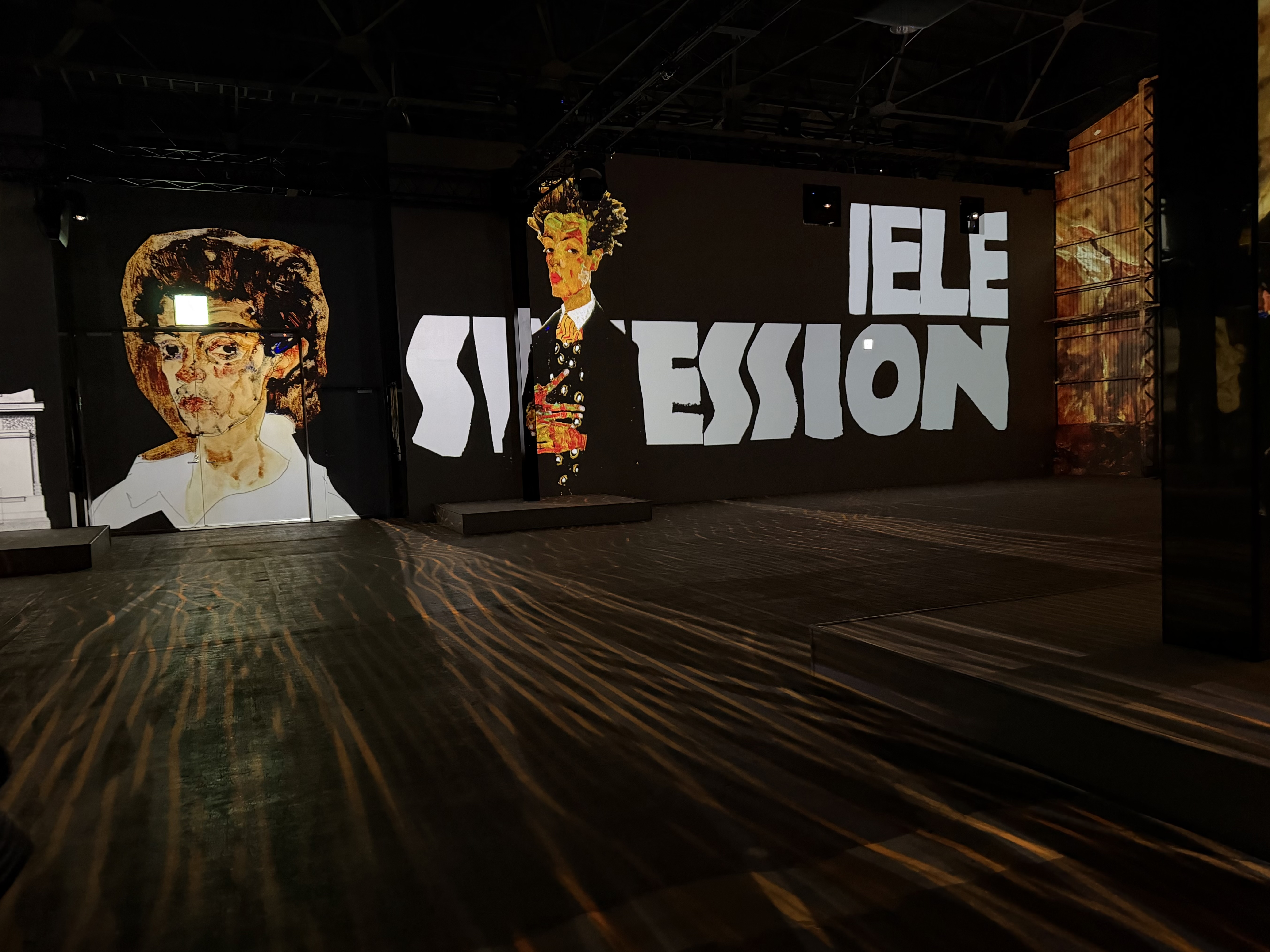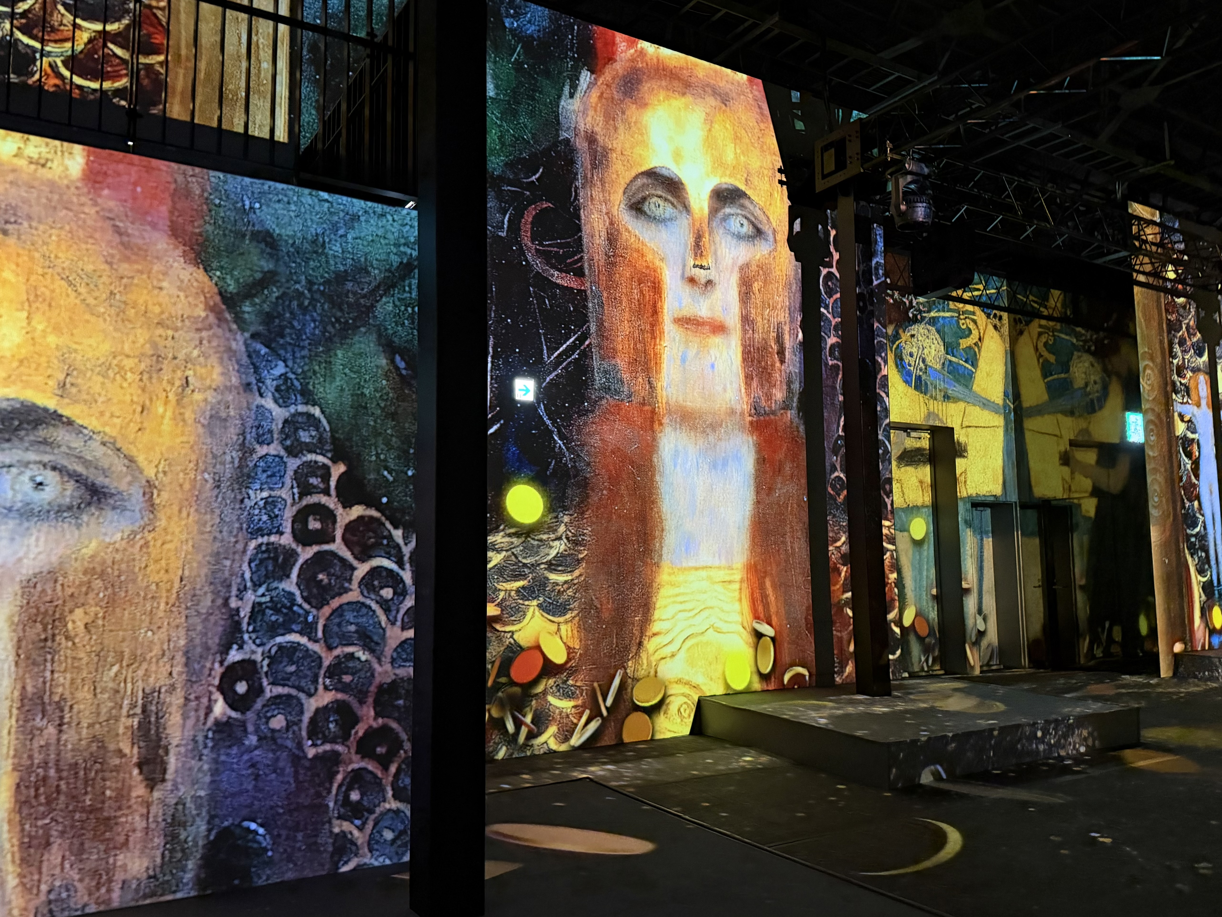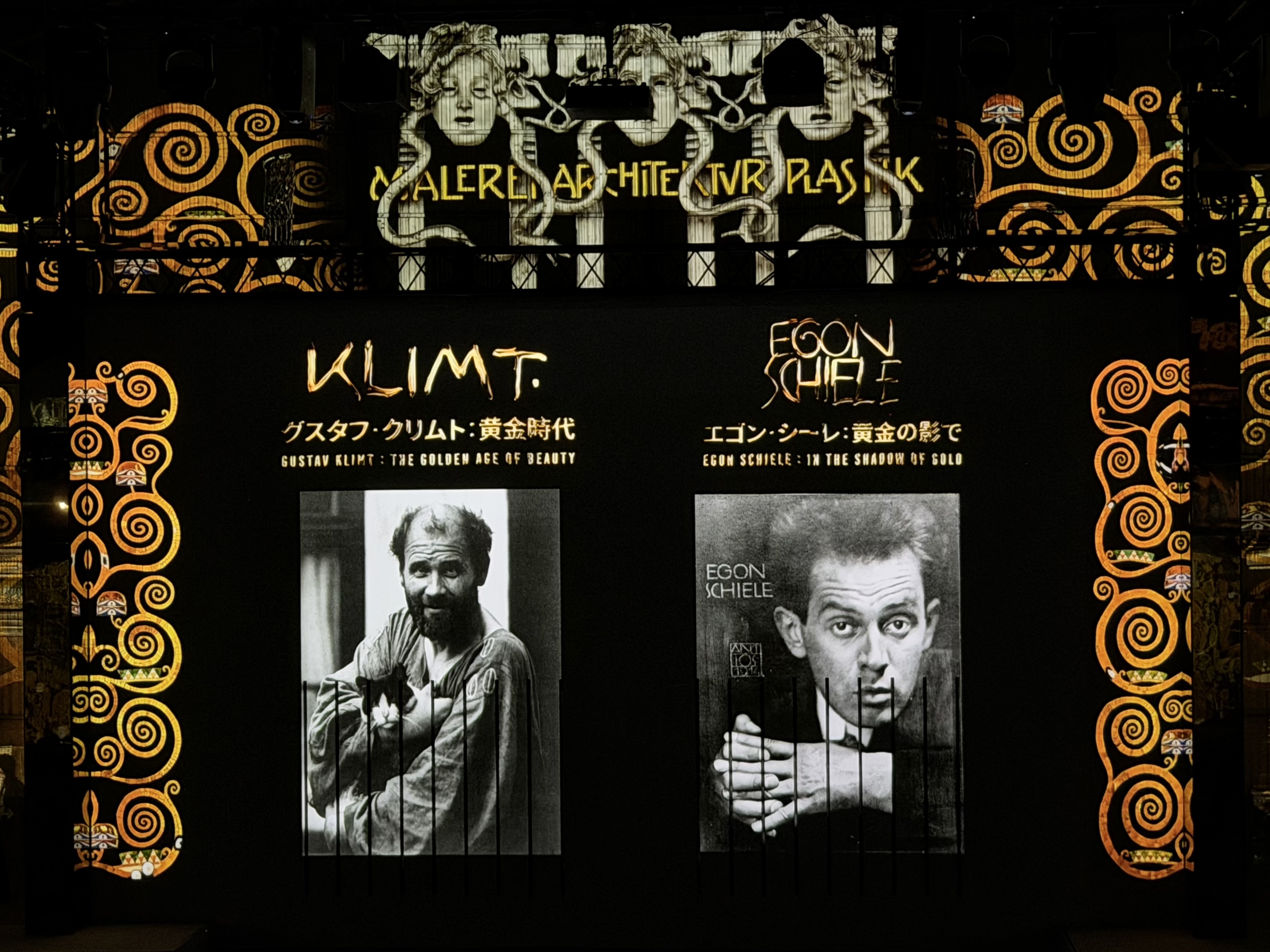 オープニングを飾る第一期プログラムのテーマは、19世紀末ウィーンを彩った「美の黄金時代」。コンクリートの巨大キャンバスを鮮やかに染め上げるのは、75台の最新鋭プロジェクターが放つ高精細な映像と、27台のスピーカーが構築する緻密な音響空間だ。物理的な制約を解き放たれたこの大空間で、ウィーン分離派の象徴グスタフ・クリムトと、エゴン・シーレ。まさに「光」と「影」とも評される対照的なふたりの巨匠が、キャンバスの枠を超えた融合を提示する。