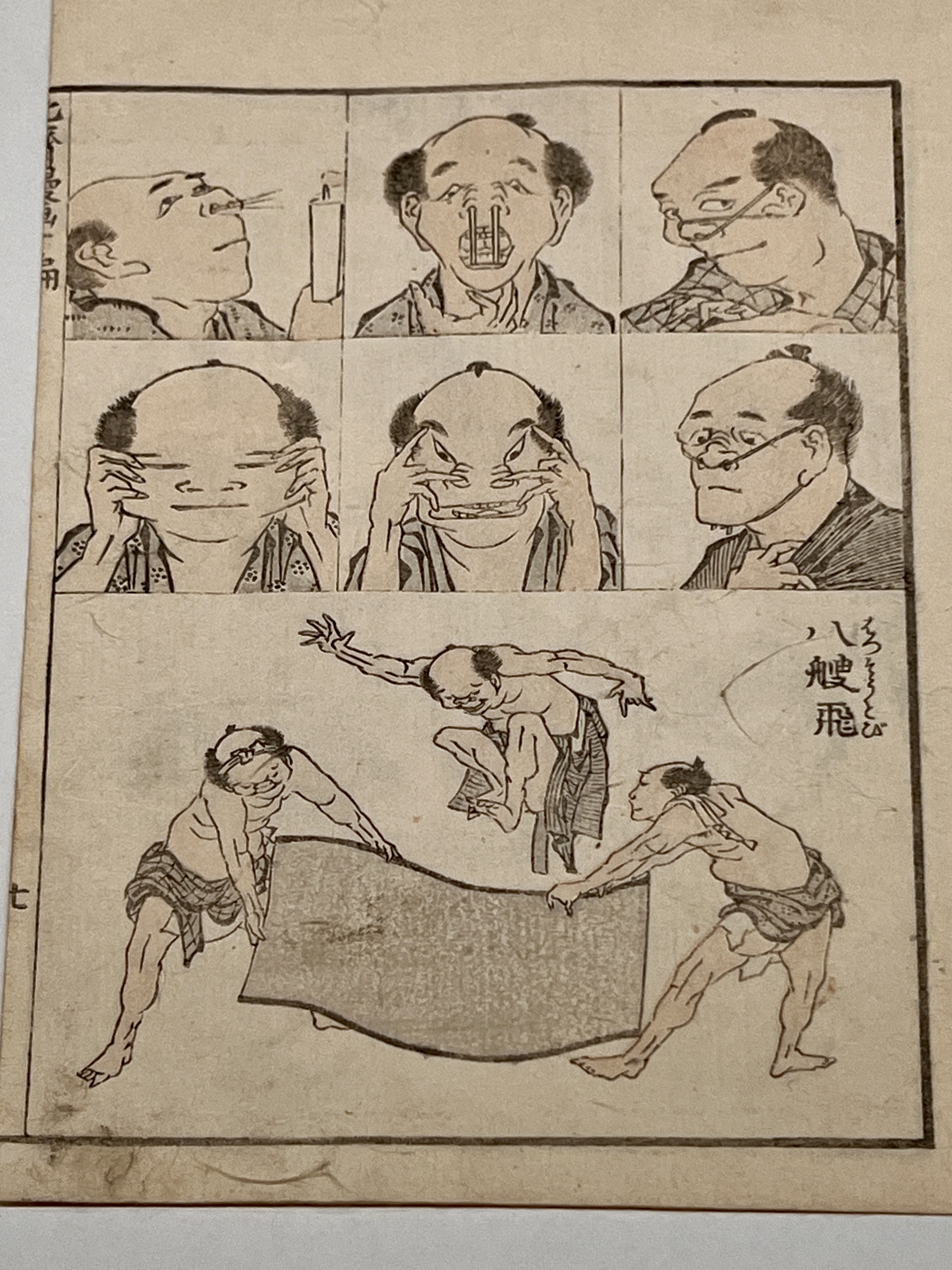 現代でも人気の高い『北斎漫画』をはじめ、北斎は優れたデッサン力に基づいたリアルな人体表現と、ユーモラスさを兼ね備えた人物を数多く描いた。