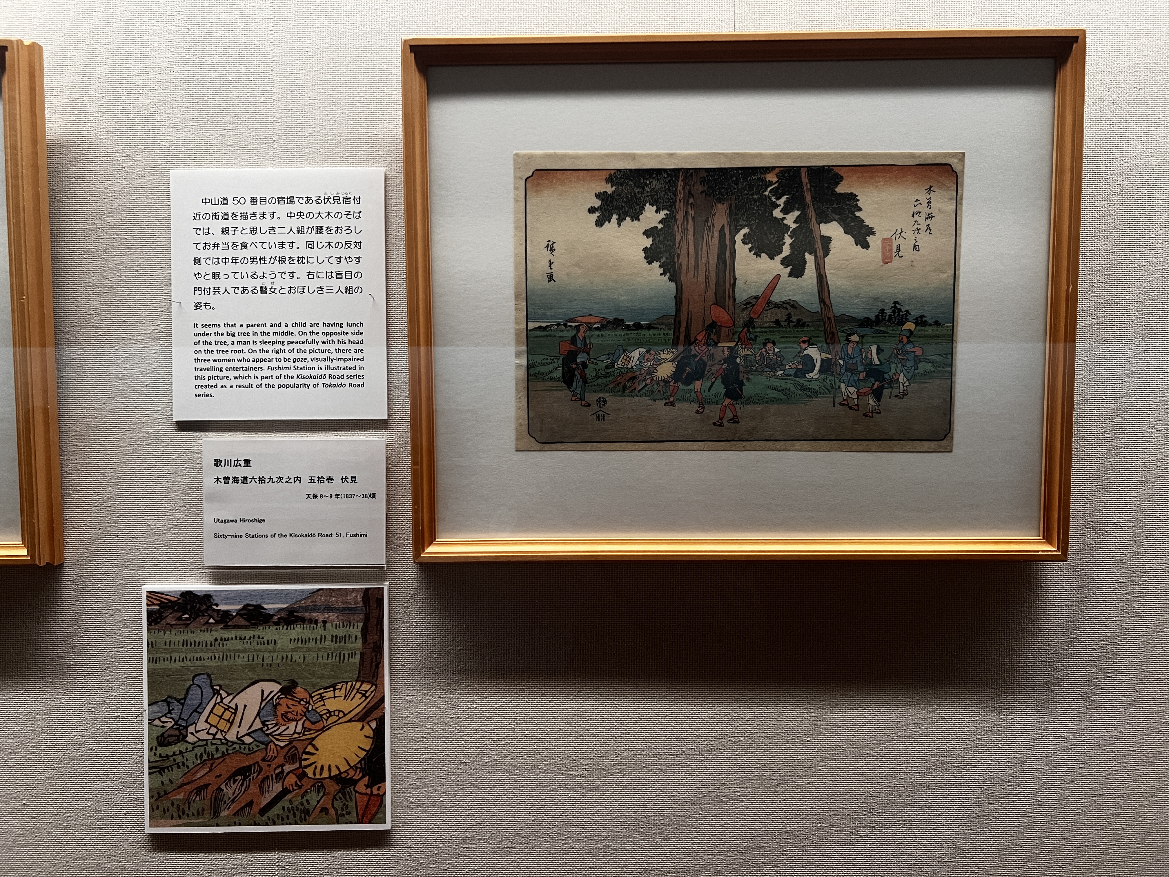 本展準備中には、二代歌川広重ら弟子たちによる作品も多数紹介するつもりで検討されたそうだが、結局出品された二代の作品は1点のみ。初代広重に比べると、どうしてもおじさんの描写が画一的だったり面白みがなかったりしたそうで、改めて初代広重の凄さが明らかになったかたちだ。